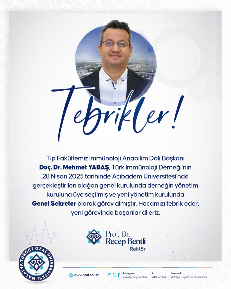 Fakültemiz İmmünoloji Anabilim Dalı Başkanı Doç.Dr. Mehmet YABAŞ, Türk İmmünoloji Derneği’nin 28 Nisan 2025 tarihinde Acıbadem ...