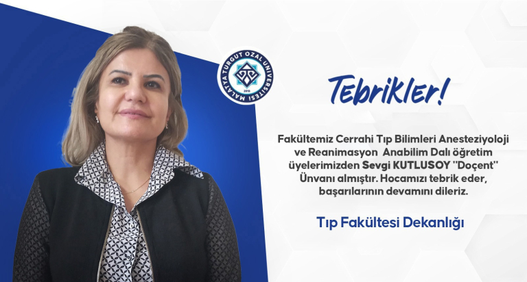Fakültemiz Cerrahi Tıp Bilimleri Anesteziyoloji ve Reanimasyon Anabilim Dalı öğretim üyelerimizden Sevgi KUTLUSOY "Doçent" ...