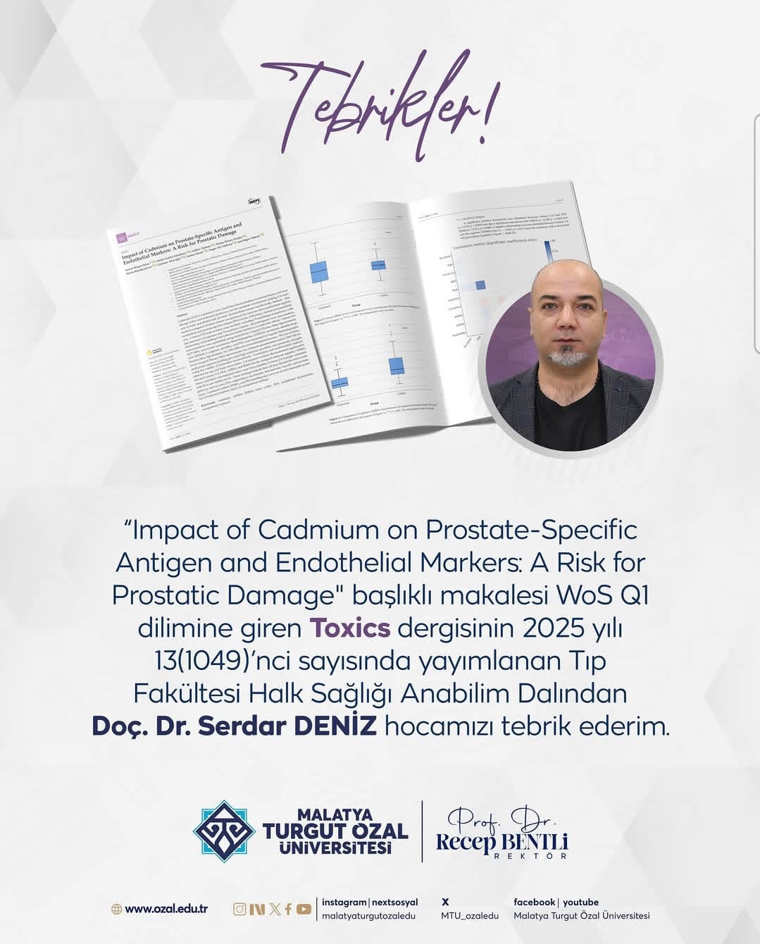 “Impact of Cadmium on Prostate-Specific Antigen and Endothelial Markers: A Risk for Prostatic Damage” başlıklı makalesi WoS Q1 dilimine giren Toxics dergisinin ...