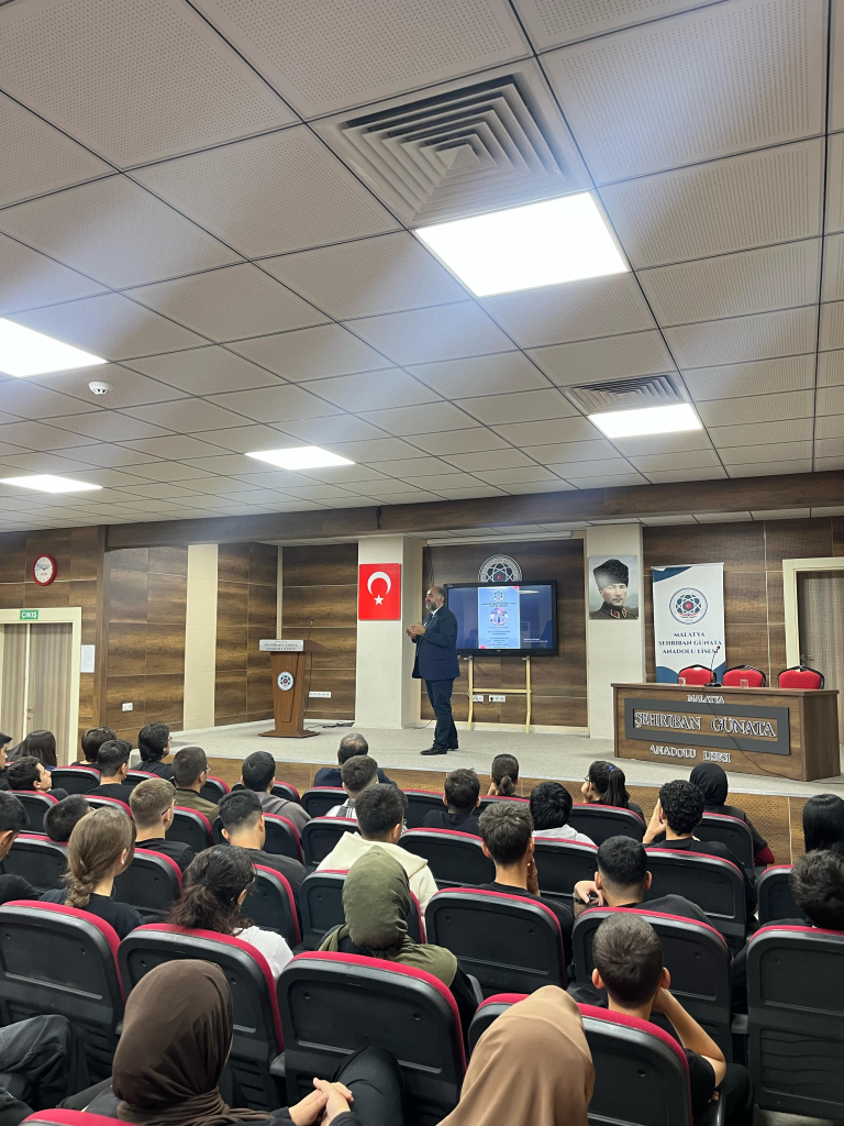Tıp Fakültesi Dekanı Prof.Dr. Ahmet Selim ÖZKAN Şehriban Günata Anadolu lisesi kariyer günleri etkinliğine katıldı. Tıp fakültesi tanıtımı ile başlayan etkinlik Hocamızın Afrika'daki hekimlik tecrübelerinden bahsetme ile devam etti. Keyifli geçen söyleşi sonunda öğrenciler cuma (23.05.2025)günü Malatya Park AVM de yapılacak Üniversiteler tanıtım fuarına davet edildi.