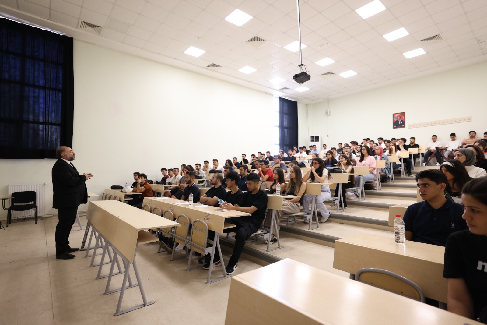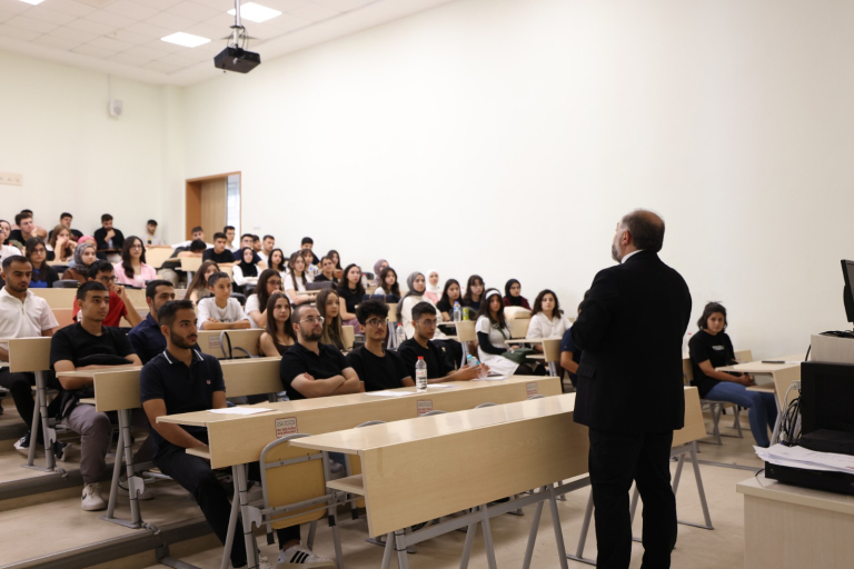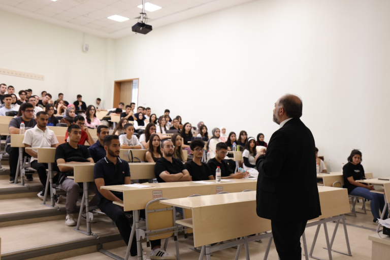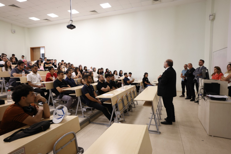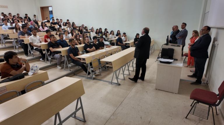 Fakültemiz Dekanı Prof.Dr. Ahmet Selim ÖZKAN fakültemizi kazanan öğrencilerle 2025-2026 eğitim yılı açılış dersini gerçekleştirdi. Sayın Dekan, konuşmasında yeni dönemin öğrencilerimiz, akademik ve idari kadromuz için başarılarla dolu geçmesi temennisinde bulunarak birlik, dayanışma ve akademik gelişimin önemini vurguladı.